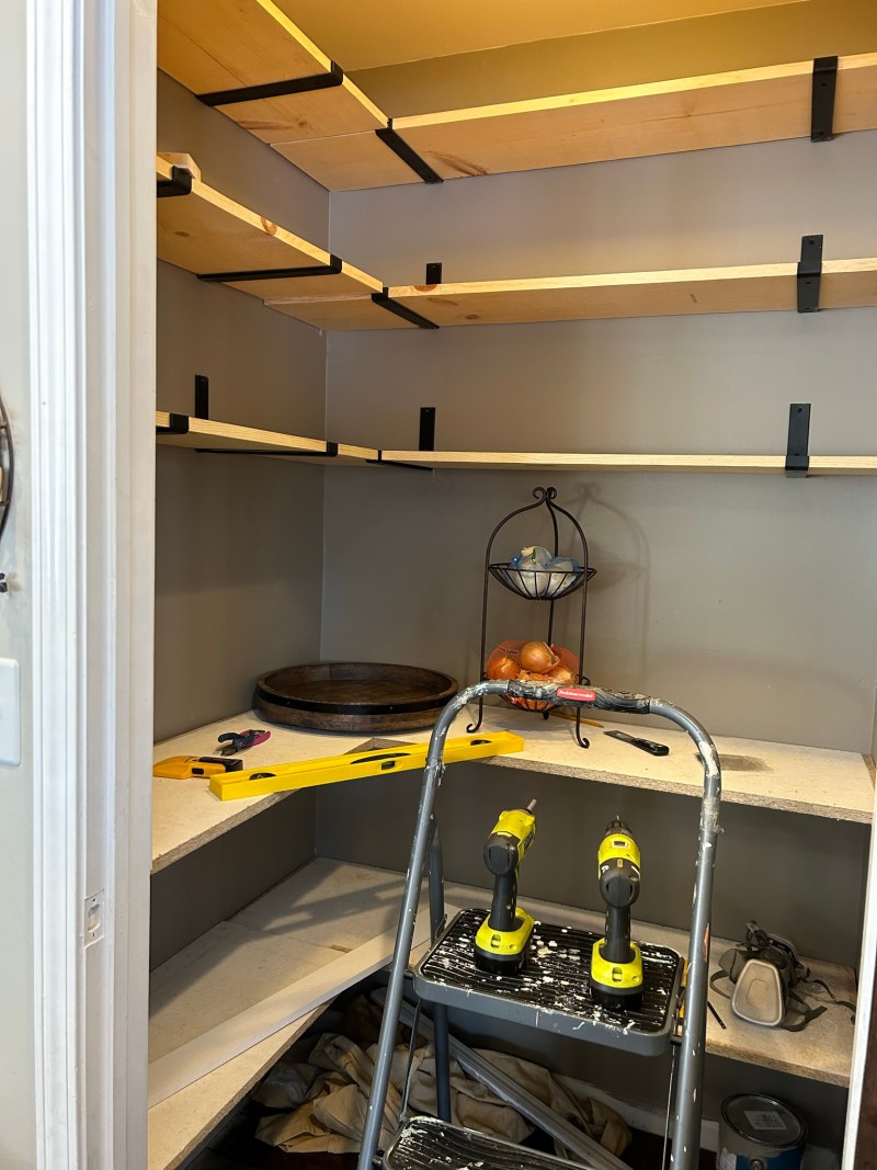I ended up moving items back into the pantry between the finishing phases, simply because I needed the countertop and table space. We are not a take-out kind of family, so the kitchen is always in use.